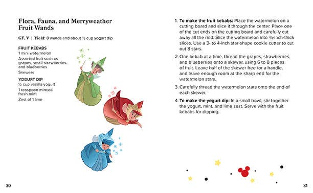 BITE-SIZE AND DELICIOUS: Tempt your tastebuds with these simple recipes featuring everyday ingredients. Enjoy White Rabbit's Garden Crudité (Alice in Wonderland), Merida Cranachan (Brave), Bare Necessities Banana Muffins (The Jungle Book), Mug of Meat (The Emperor's New Groove), Icicle Cookies (Frozen), and so many more delicious creations to munch on!