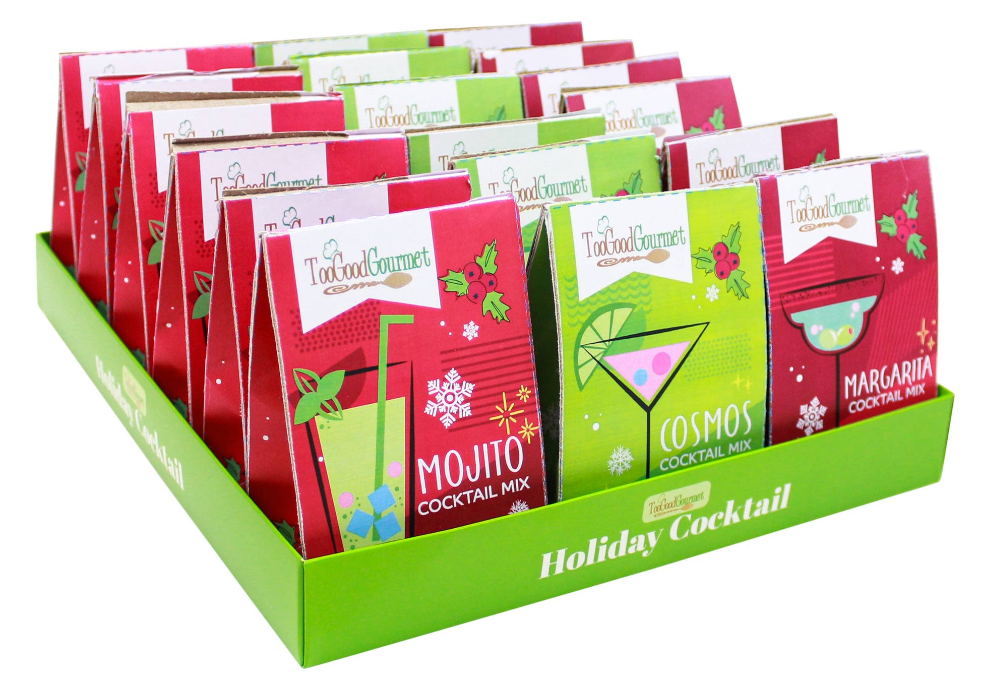 Holiday Cocktail Mixes – Festive Seasonal Drinks, Perfect Stocking Stuffer Delight your customers with Too Good Gourmet’s Holiday Cocktail Mixes—classic favorites like Mojito, Cosmo, and Margarita in festive, gift-ready packs. A fun and unique stocking stuffer for holiday celebrations! 🍹 Classic flavors – enjoy Mojito, Cosmo, and Margarita mixes in a festive holiday format 🎁 Seasonal favorite – perfect for holiday gift baskets, stocking stuffers, or Christmas party favors Giftable packaging – ideal for gift shops, gourmet markets, and specialty retailers Size: 1oz. each.