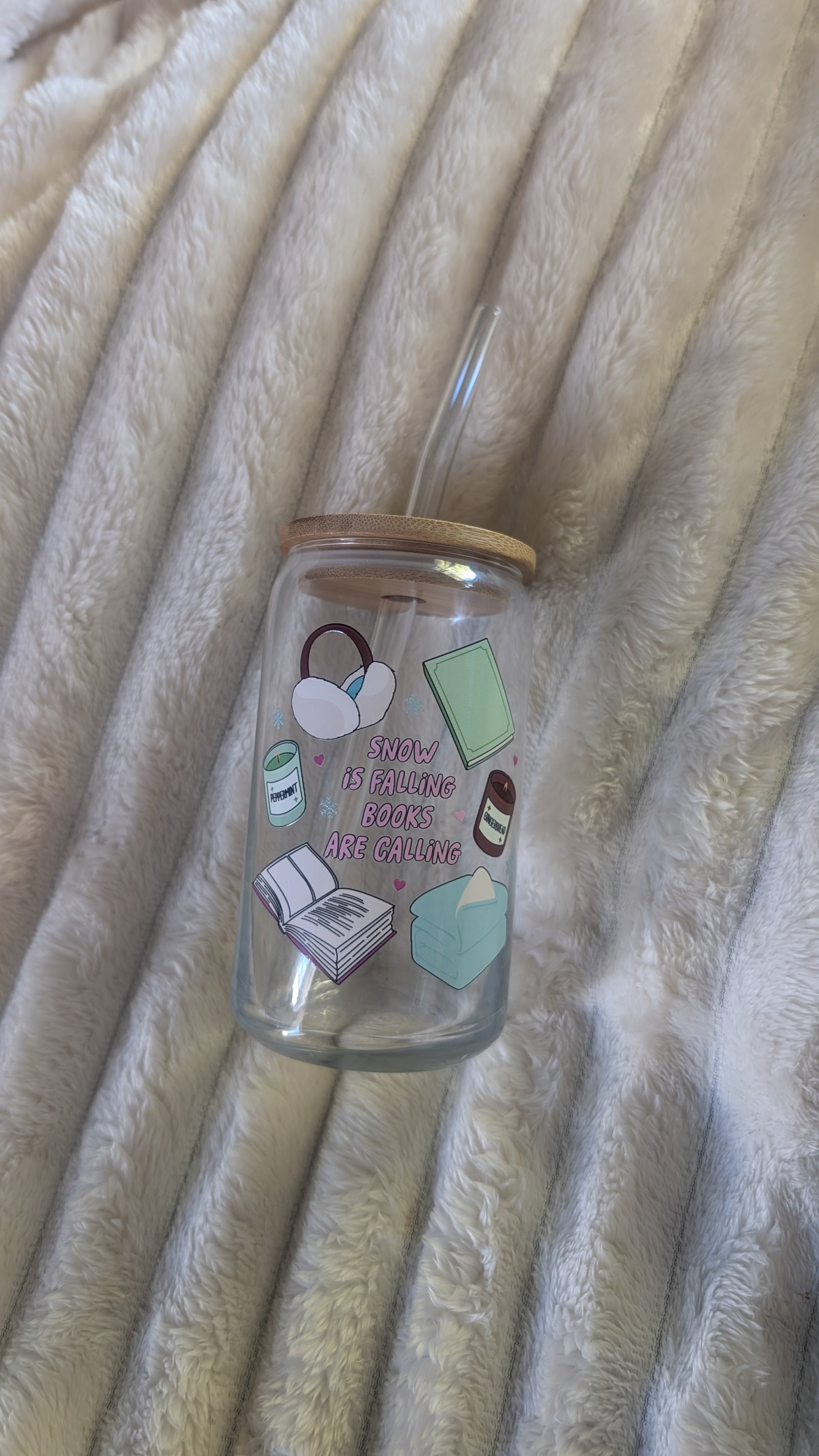 Snow is Falling, Books are Calling - Glass with Bamboo Lid
